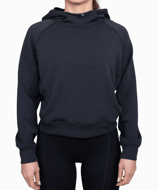 Cropped technical hoodie with lightweight, breathable fabric and a soft interior. Performance fit with holographic detail.